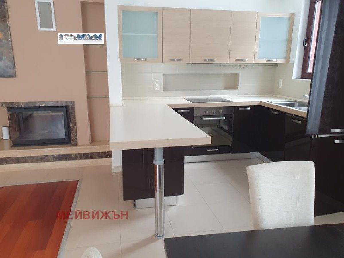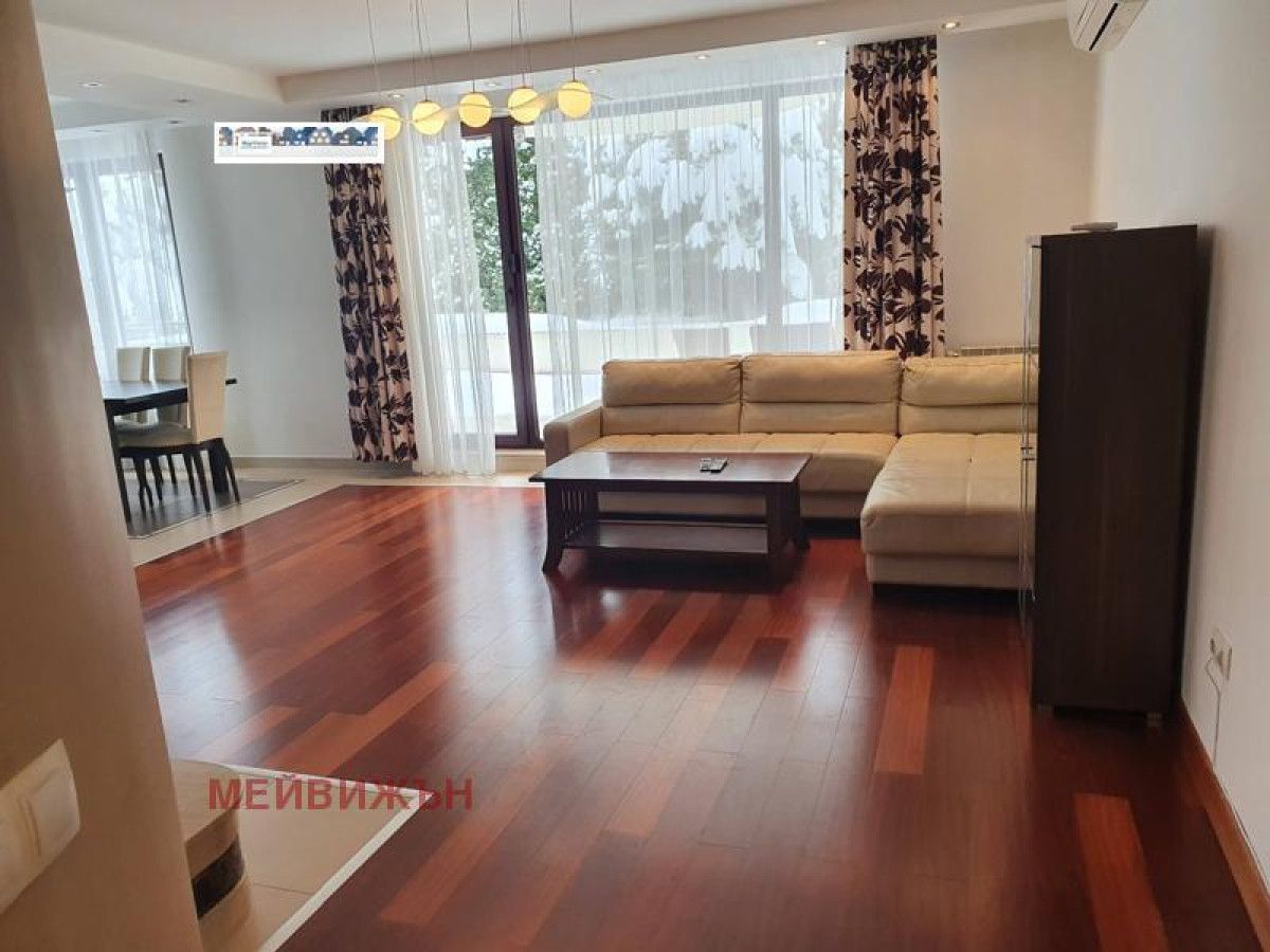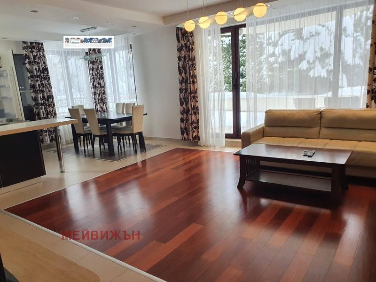 We offer to your attention a fully furnished four-room apartment in Boyana district in a gated complex with a swimming pool. The apartment consists of: entrance hall and corridor, three bedrooms, two bathrooms with toilets, living room with kitchen and dining room, two terraces. The price is with VAT, including maintenance fee and underground parking space. In the same complex we also offer a three-room apartment -1200E, 160 sq.m.