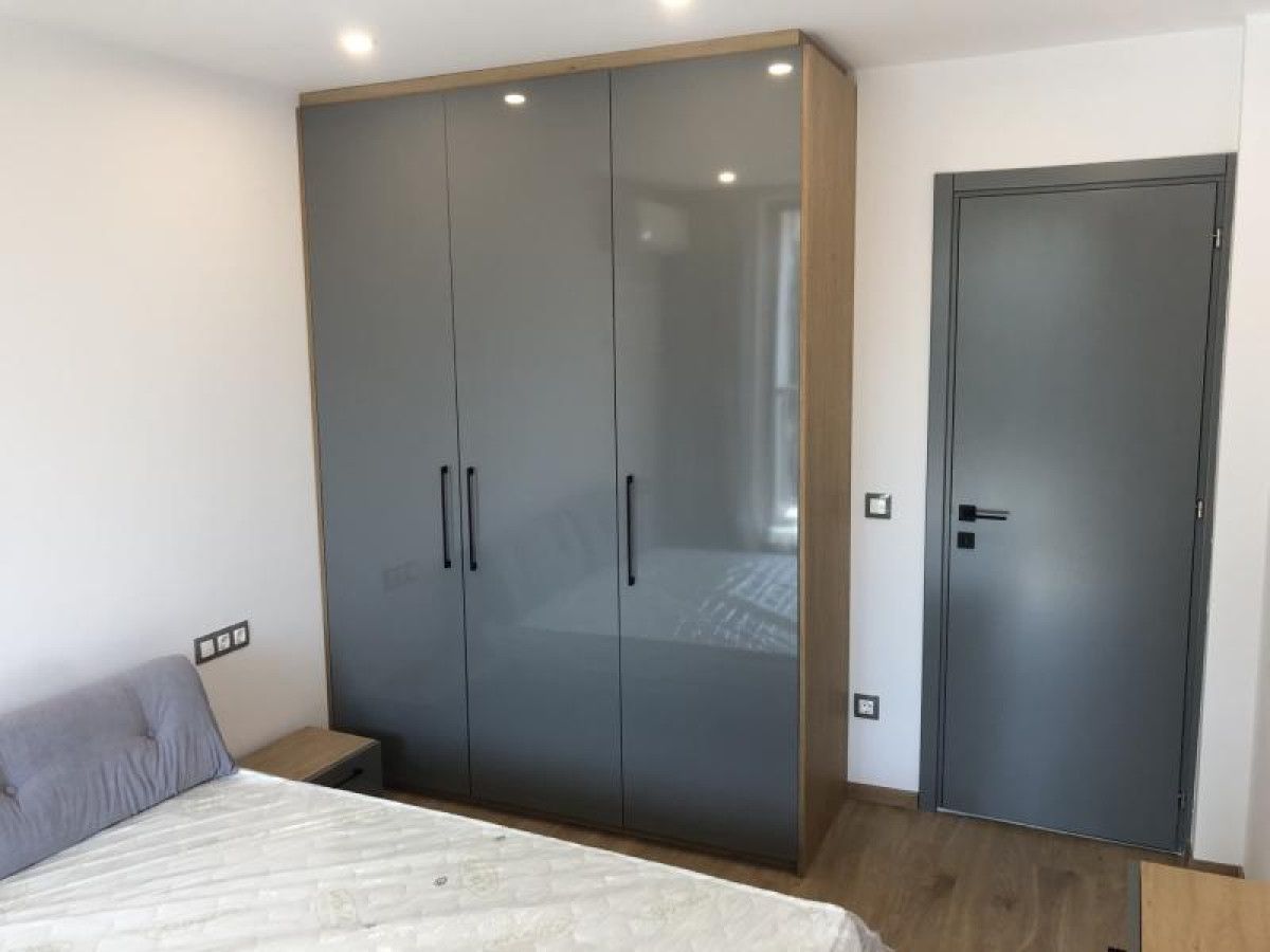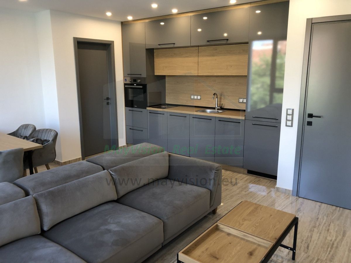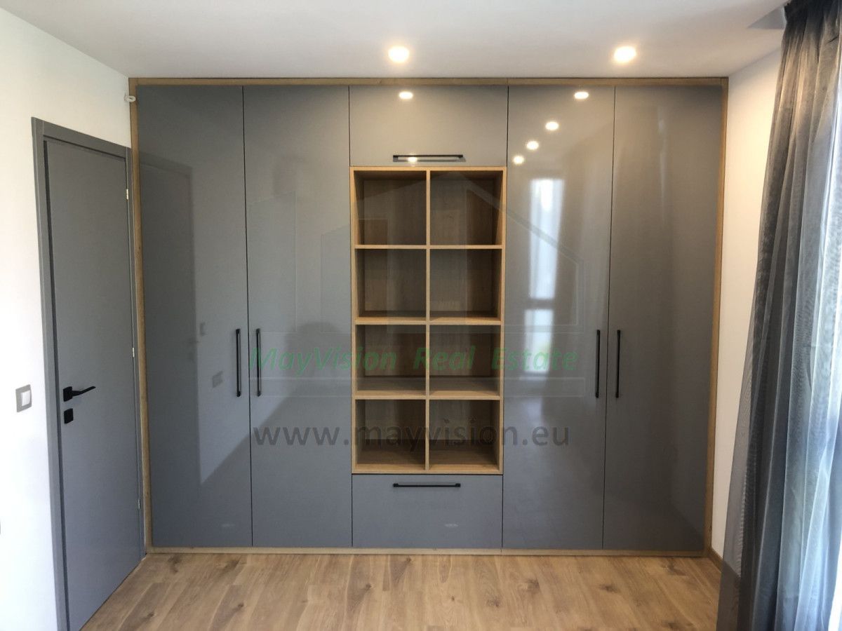 It consists of entrance hall and corridor; living room with French windows and integrated fully equipped kitchen; two bedrooms; dressing room; bathroom with toilet; terrace. There is a possibility to rent a ground parking space.