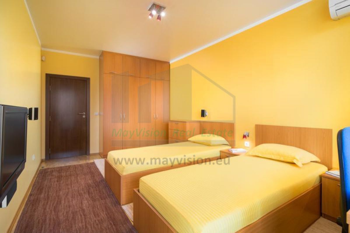 It consists of 2 large bedrooms, living room with kitchen, two bathrooms, pantry. The bathroom has TV-mirror, bathtub with hydro-massage, bidet, waterproof socket in cabinet with mirror. Audio-video-TV-internet installation connecting the whole apartment, security system 161, external armored door, ABLOY cartridge, bulletproof protection of cartridge.