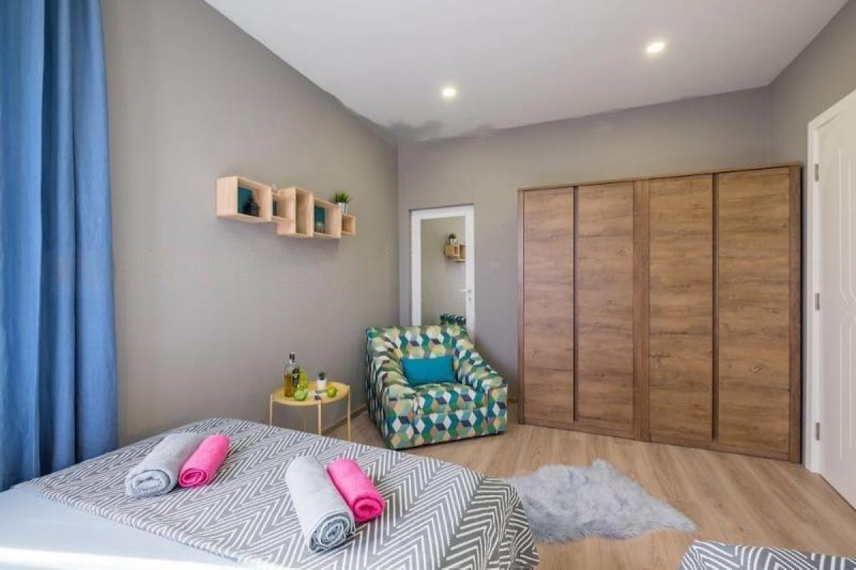 For short-term rent, up to six months, a furnished, three-room apartment in a convenient location in the center of Sofia, in close proximity to the Serdika metro station between Hristo Botev Blvd. and Todor Aleksandrov Blvd. The apartment is after a major renovation - it consists of a spacious living room with a kitchenette, two bedrooms, a bathroom with a toilet and a balcony - it has air conditioning.