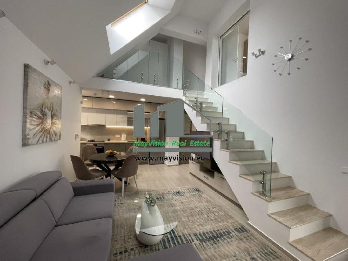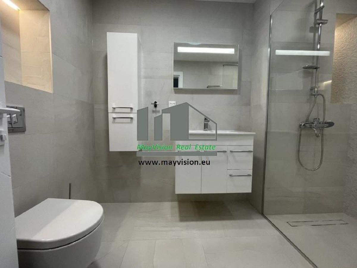 The apartment has very good insulation and triple glazing. Heating is gas with radiators, floor convector in the living room and floor convector in the bathrooms. There are 2 Mitsubishi air conditioners for the upper bedroom and living room. There are all necessary appliances for the kitchen - oven, electric and gas stove, dishwasher, refrigerator with freezer, coffee machine and toaster.