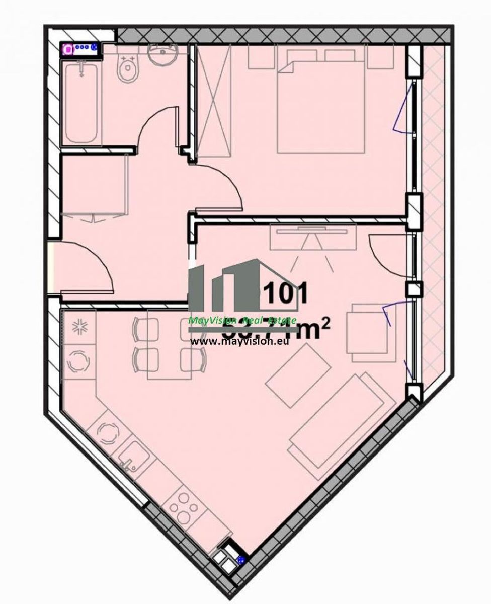We at My Vision Real Estate are proud to offer to you a finished apartment in a nice and secure building. The newly built blocks are part of a mixed office and residential building and are located in the town of Sofia in a very communicative place, a few minutes from the Eagles Bridge.