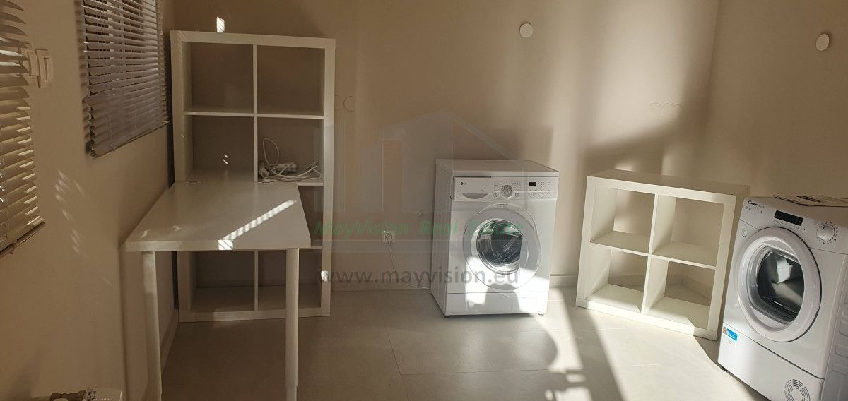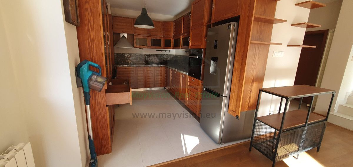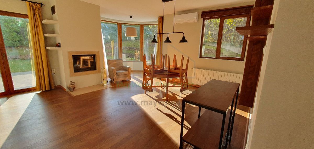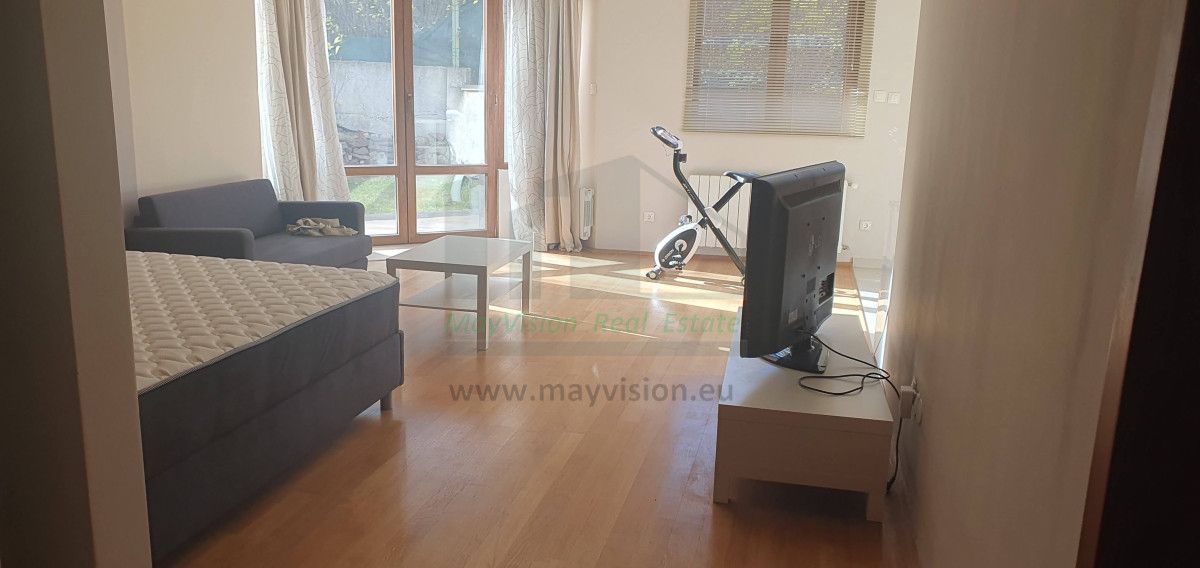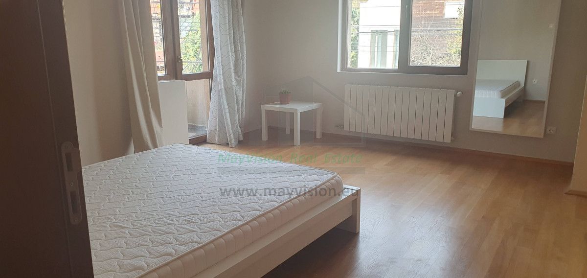 We at MayVision Real Estate offer you a spacious house in a clean and peaceful area, right next to the "BEL VALLEY" COMPLEX - the "Bells" park. Business Park Sofia, HP, HUNDAY, COCA COLA, Post Bank BMW, TECHNOPOLIS, COMO and other stores are a few minutes away. The property is divided into two parts - a main house and a completely independent apartment with an extremely practical distribution and the possibility of independent use by two households. The garage is for two cars with internal and external access to both parts of the house, there are two separate external parking spaces. The ground floor has spacious rooms suitable for a sauna, hobby area and others. DISTRIBUTION: HOUSE PARAMETERS: First floor - living room with dining room, toilet, terrace with barbecue and open space to a landscaped yard. Second floor - three bedrooms, two bathrooms, two terraces. Third floor - two rooms with separate storage space and laundry room, panoramic terrace. APARTMENT PARAMETERS: Bright living space and terrace to the yard, bedroom with closet, spacious bathroom with bathtub, equipped gym. SPECIFICATIONS: The heating is gas, with two separate boilers that supply the apartment and the house independently, there are air conditioners installed. The yard is maintained by a landscaping company, and the fee is included in the rent.
