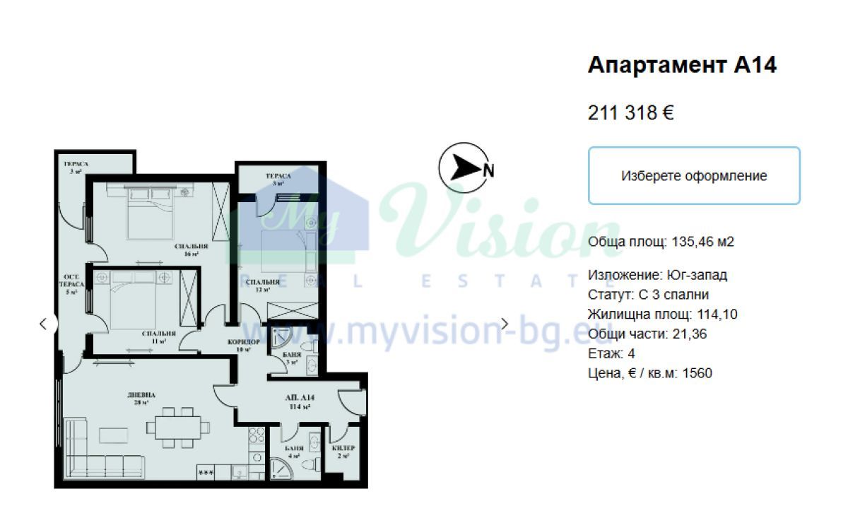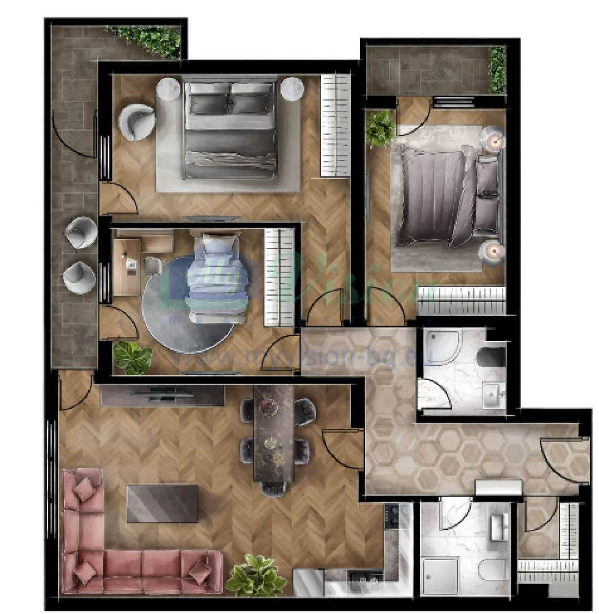 We at MyVision Real Estate are proud to offer you a three-bedroom apartment for sale in a new residential complex, located in a convenient area near a public swimming pool, public transport stops, "Billa" and "Lidl" supermarkets, car services, public transport stations, gas stations, a variety of shops, market, schools and kindergartens, green areas, hospital, gym and restaurants.