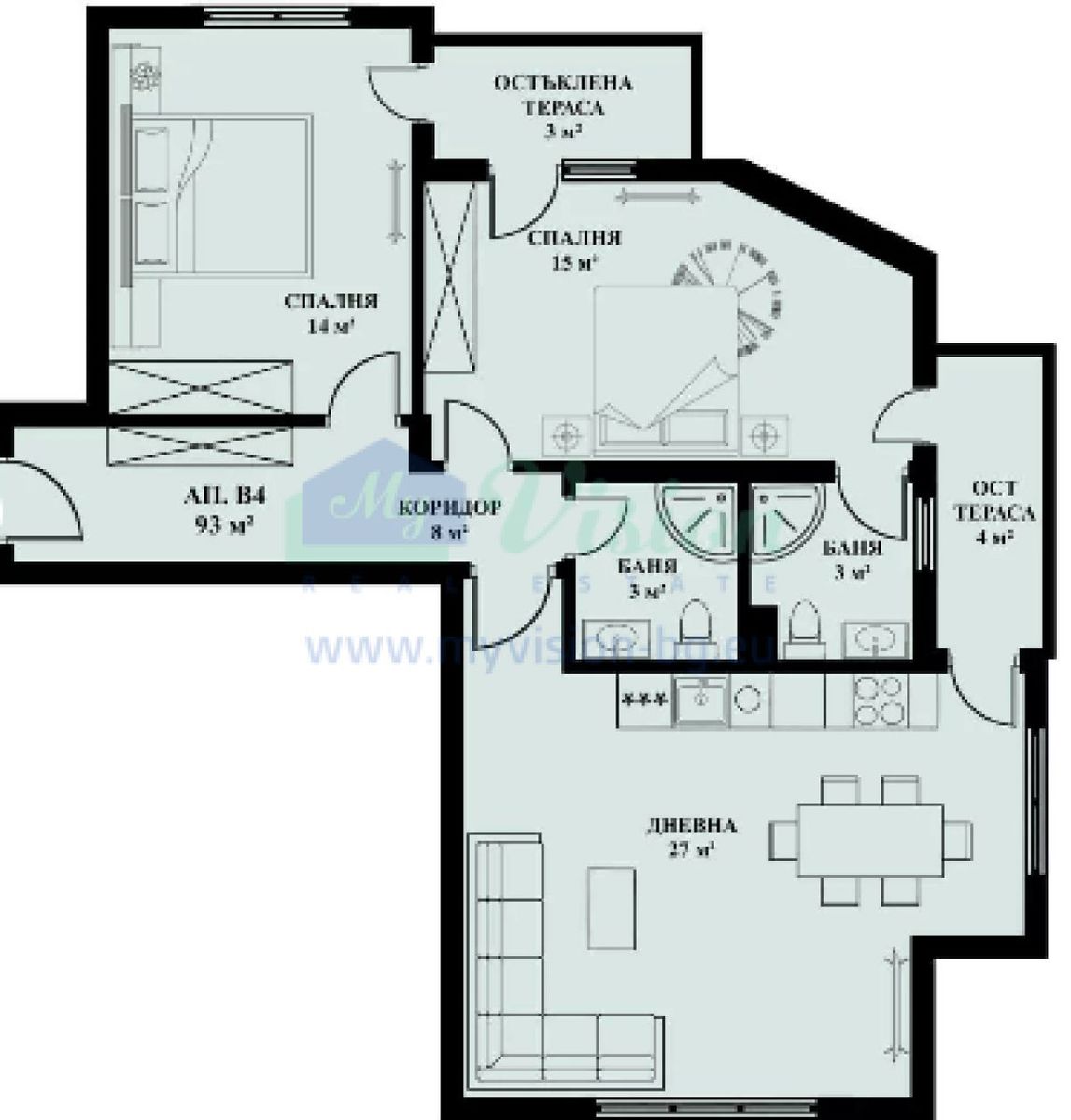 We at MyVision Real Estate are proud to offer you an one-bedroom apartment for sale in a new residential complex, located in a convenient area near a public swimming pool, public transport stops, "Billa" and "Lidl" supermarkets, car services, public transport stations, gas stations, a variety of shops, market, schools and kindergartens, green areas, hospital, gym and restaurants.