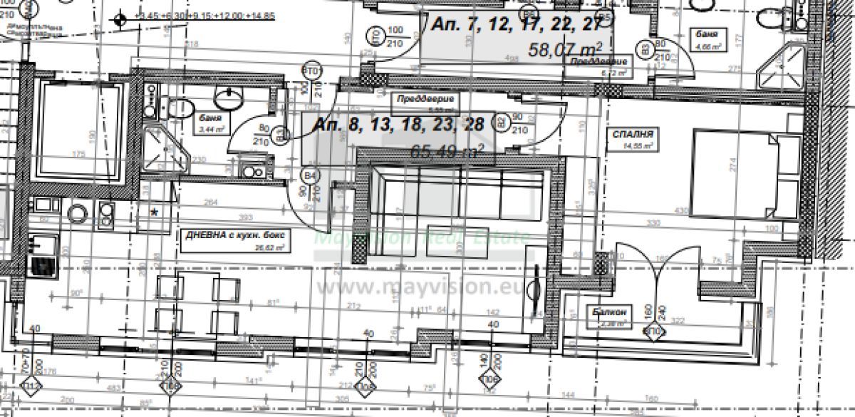 It consist living with dining and kitchen box, bedroom, bath with WC, balcony. Possibility to buy a parking space. Actual area 65.49 sq. m.