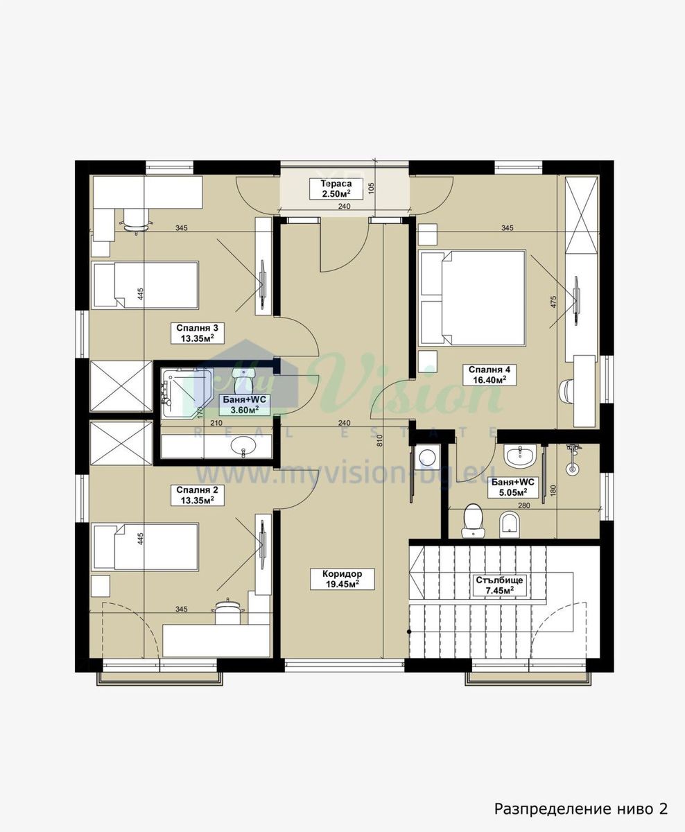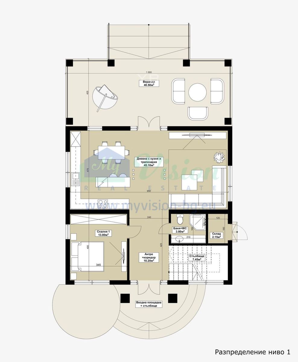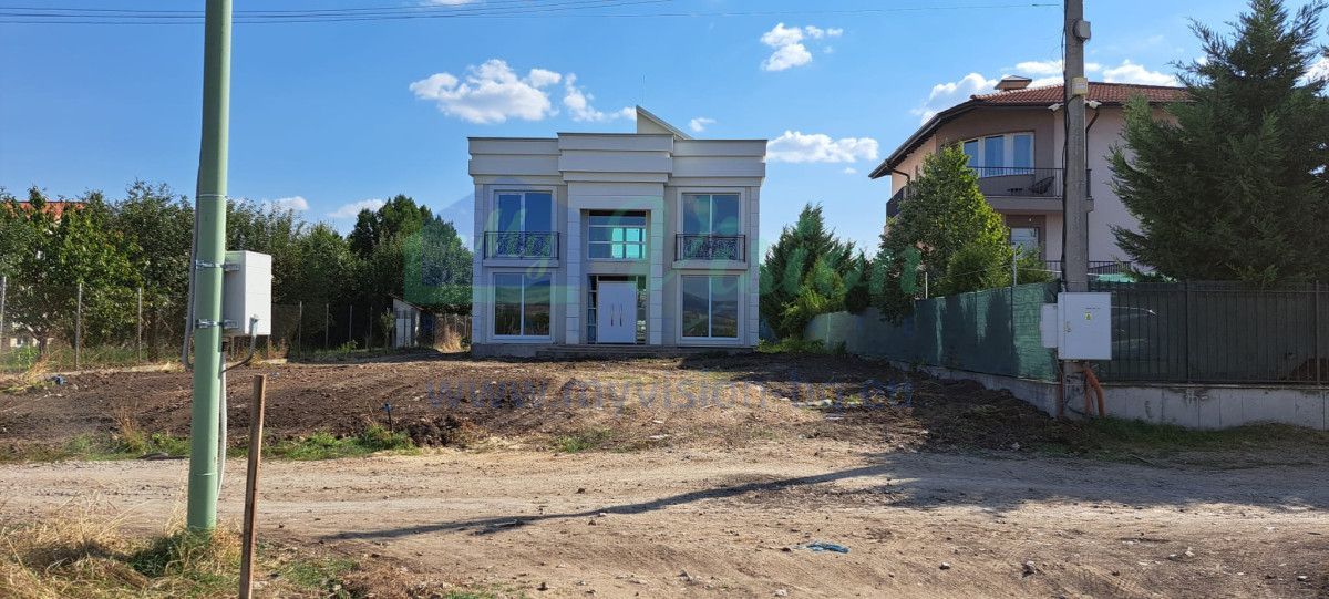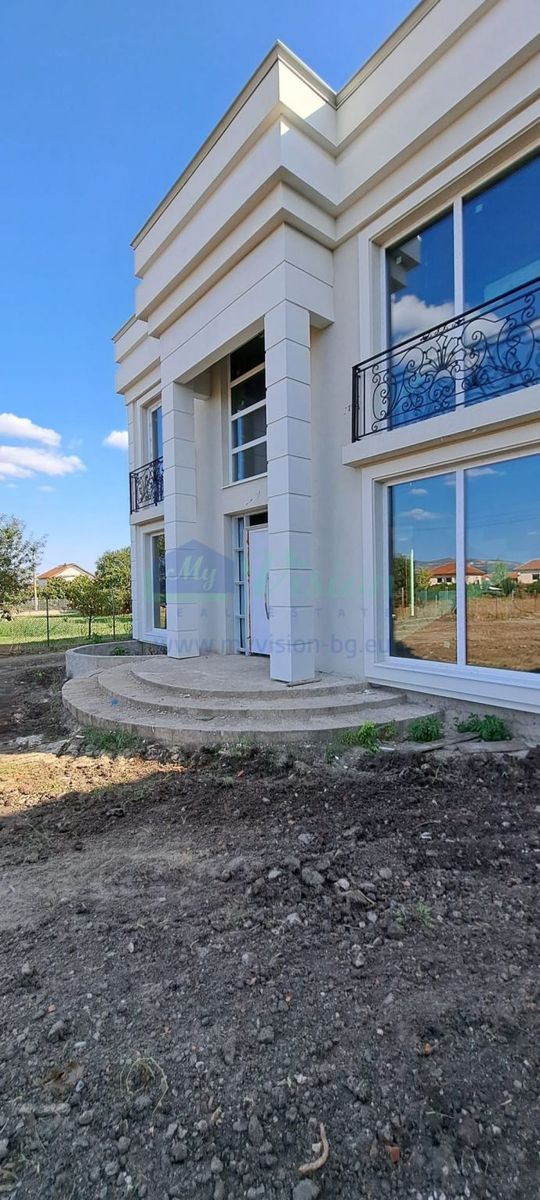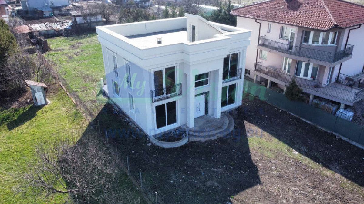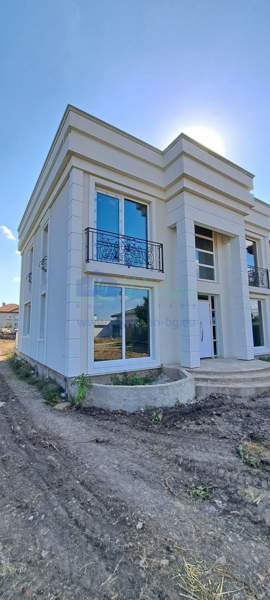 A beautiful house near Sofia. On three levels - two residential floors and one - a roof panoramic terrace. Each level has a built-up area of 102 sq m. On the first floor there is another 40 sq m. of built-up area, intended for use as a veranda. The internal layout is shown in the photos, and is intended to be individualized according to the client's requirements. Fully built-up installations - electricity, water, sewer. There is central gas on the regulatory border with the property.